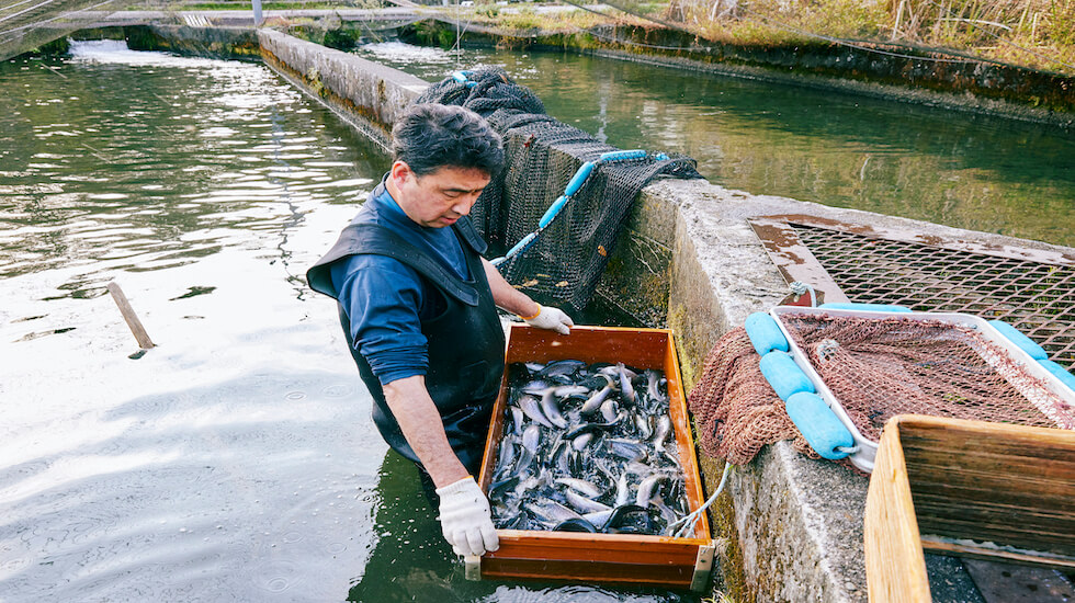 地元に根付いているからこそ、代々お付き合いのある地元の養殖場。魚を焼く専任のスタッフが長年の目利きで、直接岩魚やヤマメなどの川魚を仕入れます。