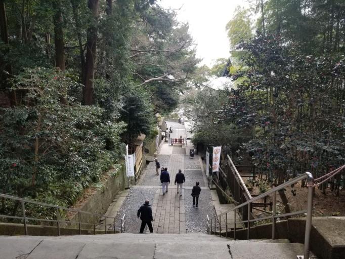 博物館へは参道下の「久能山下」から徒歩約20分です。参道正面の久能山東照宮 一ノ鳥居をくぐった後は、左右に曲がる石段を1000段以上登ります。