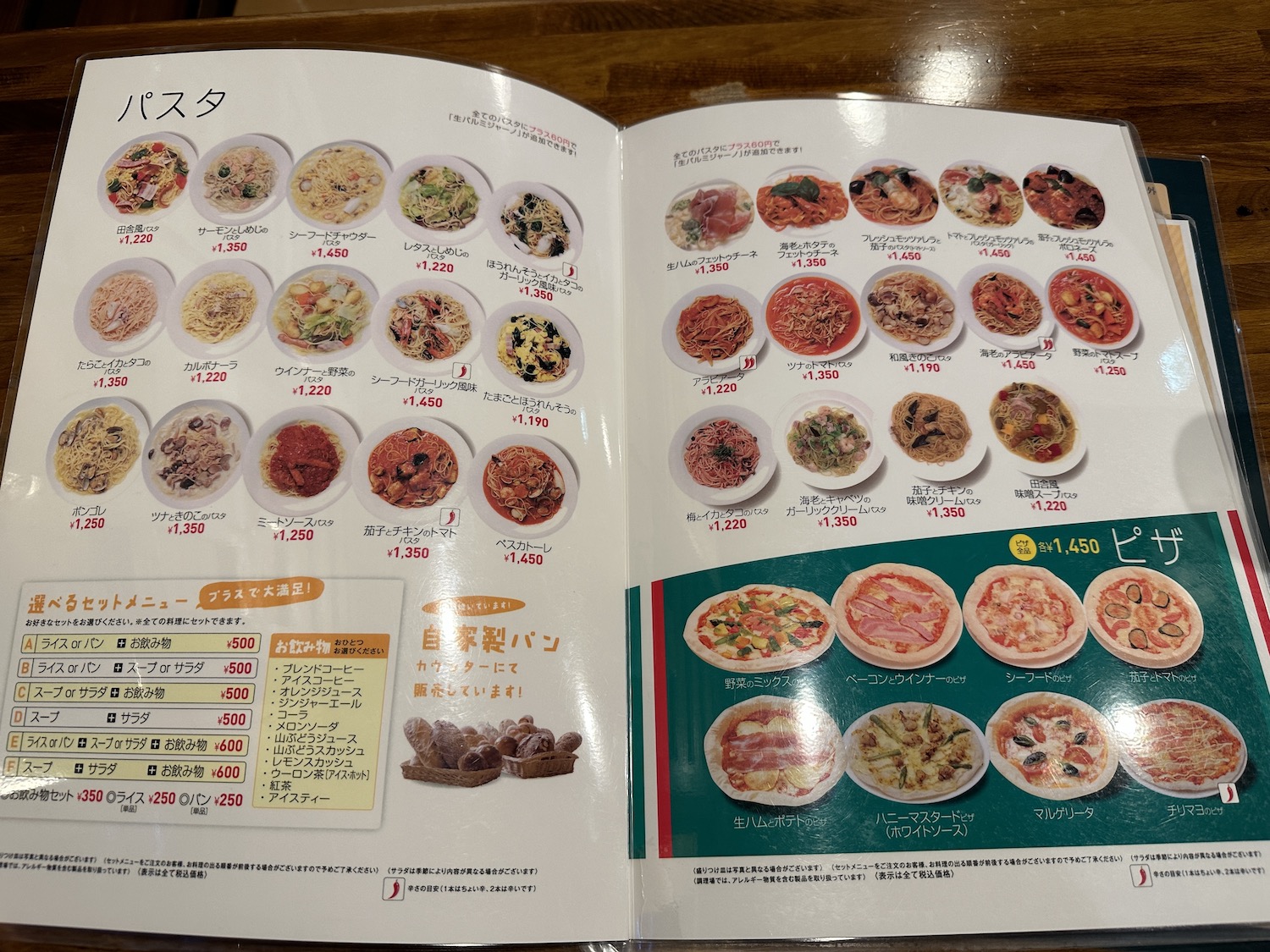 メニューの数はなんと驚きの120種類超え!ピザやパスタ、ハンバーグ、パフェなど豊富なラインナップ。