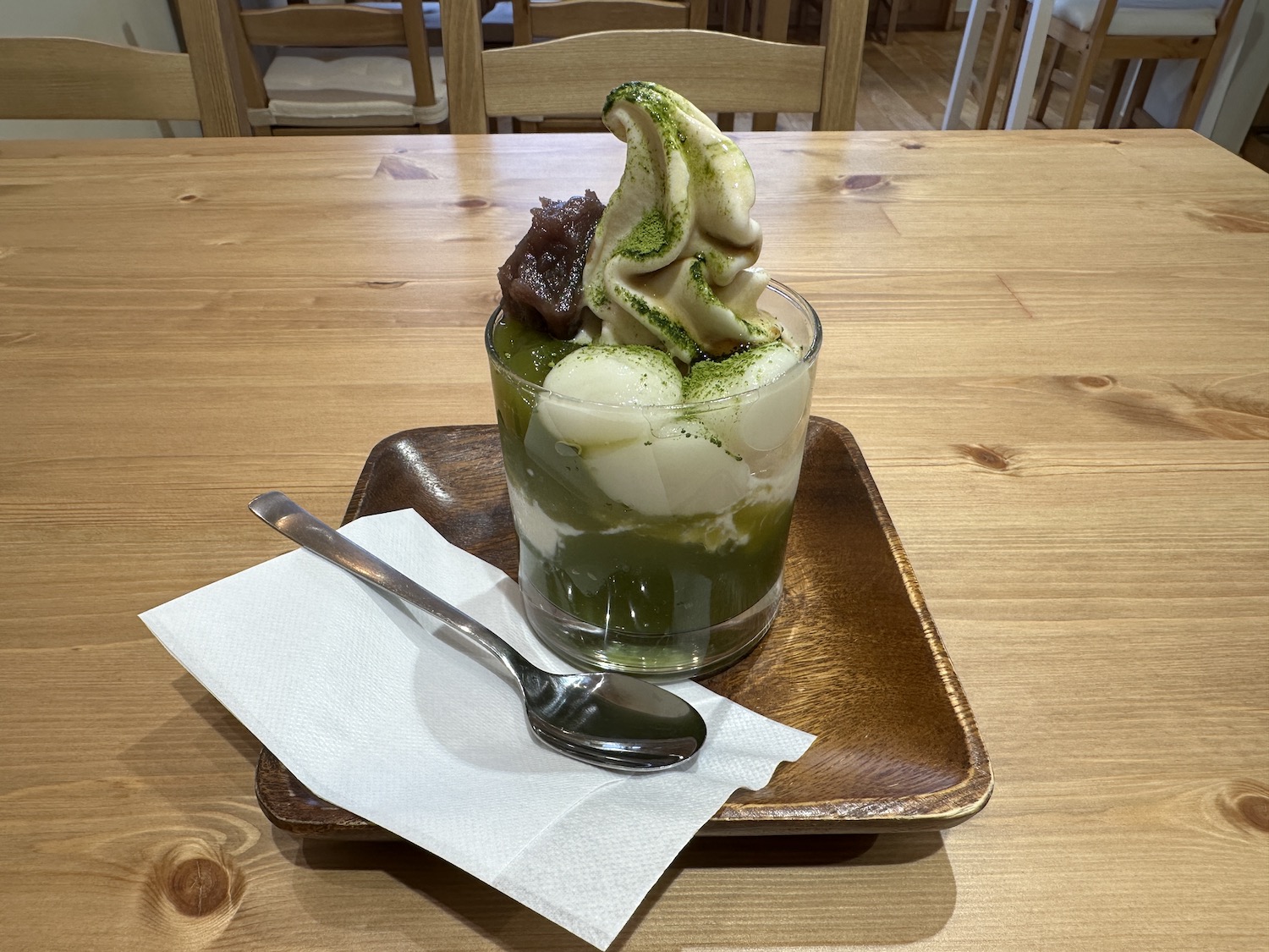 写真のソフトクリームはお米から作られていて、なんと牛乳や卵は使われていません。