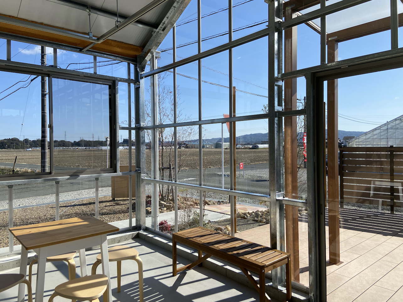 この日は1月中旬で風の強い日でしたが、客席は気持ちの良い陽だまり。暖房なしで室温は23℃、ジェラートを食べてもぽかぽかです。