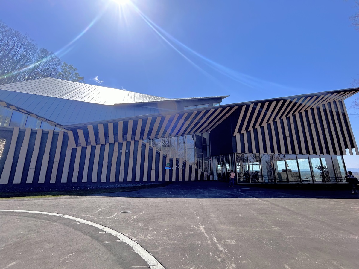 「キトウシの森 きとろん」の外観や館内はまるで美術館のようなスタイリッシュな建築物です。これは、建築家「隈研吾」氏の監修デザインによるものなのだとか。