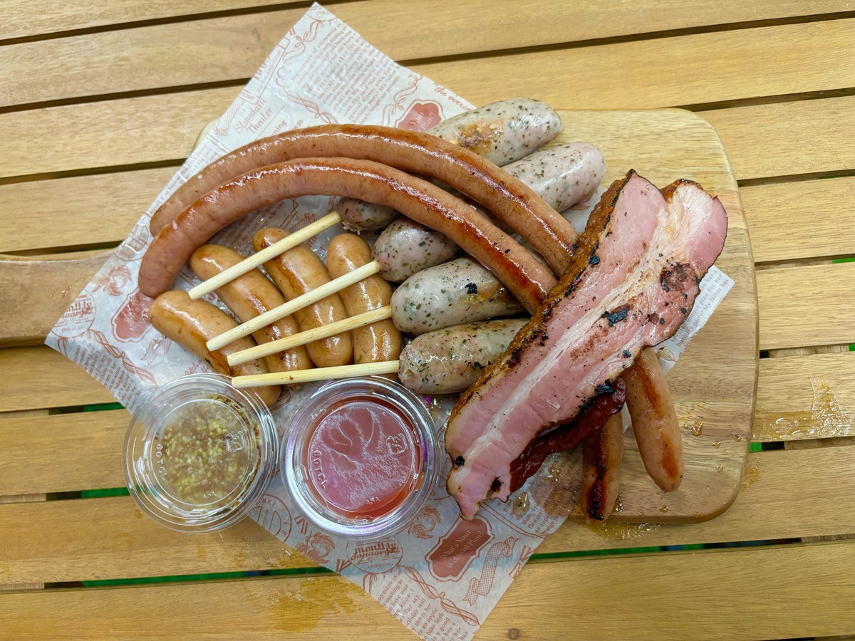 フードコーナーでは、定番の枝豆やフライドポテト、ソーセージなどのグランドメニューの他に、今年は「県民大好き食品メーカーフェア」が開催されています。