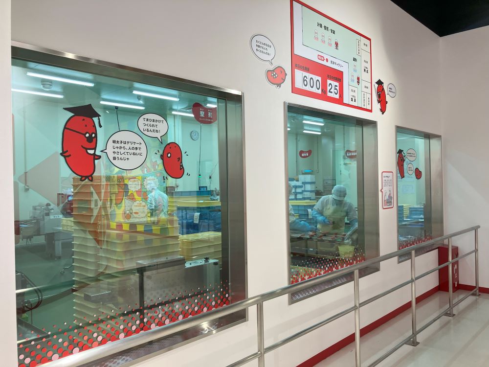 実際に明太子を作っている、工場見学もたのしめる