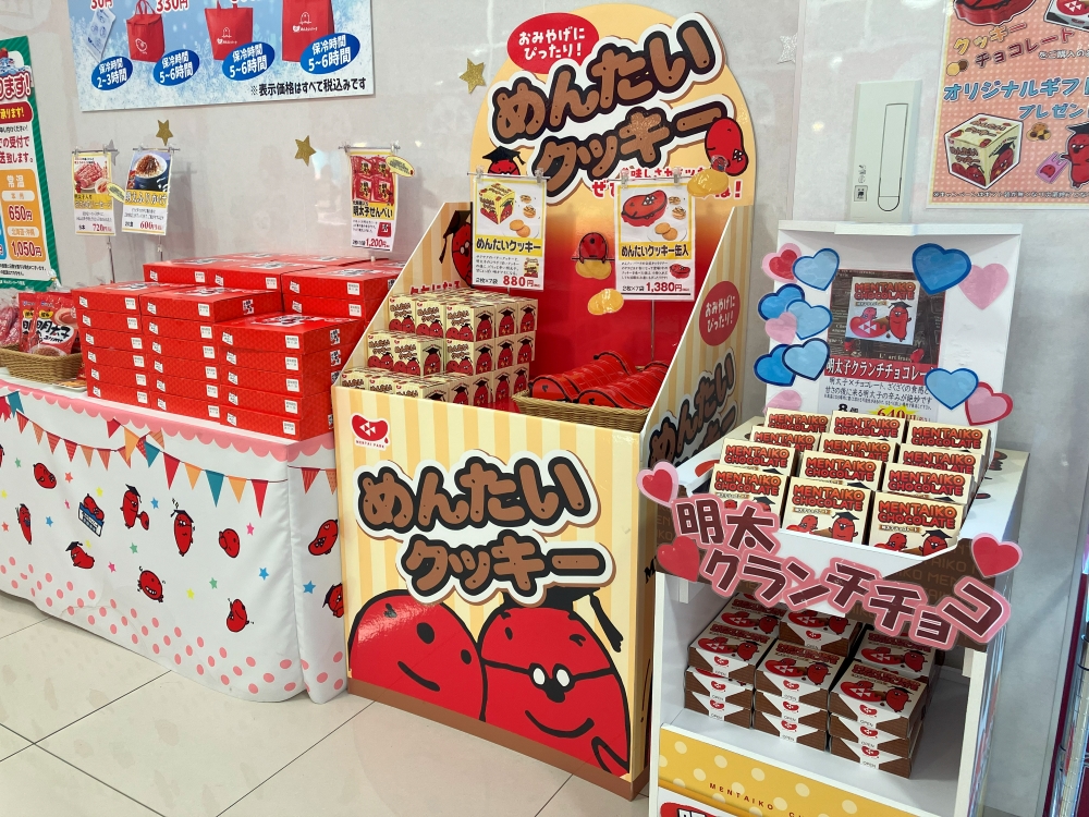 入口から明太子が溢れる空間。さっそく写真を撮りたくなる…!