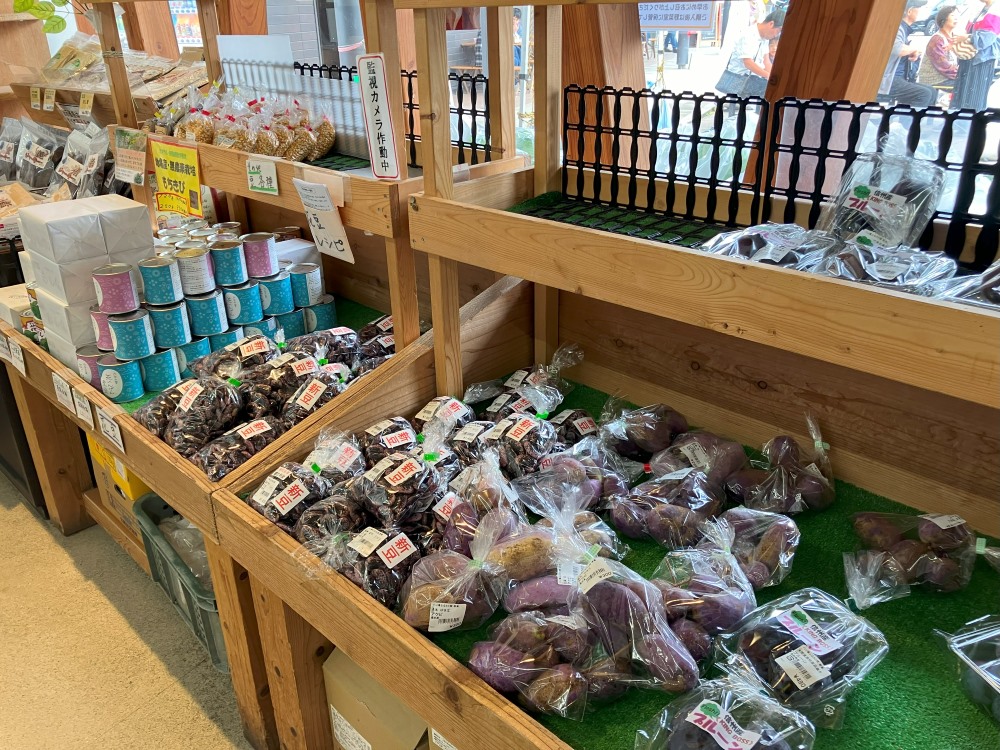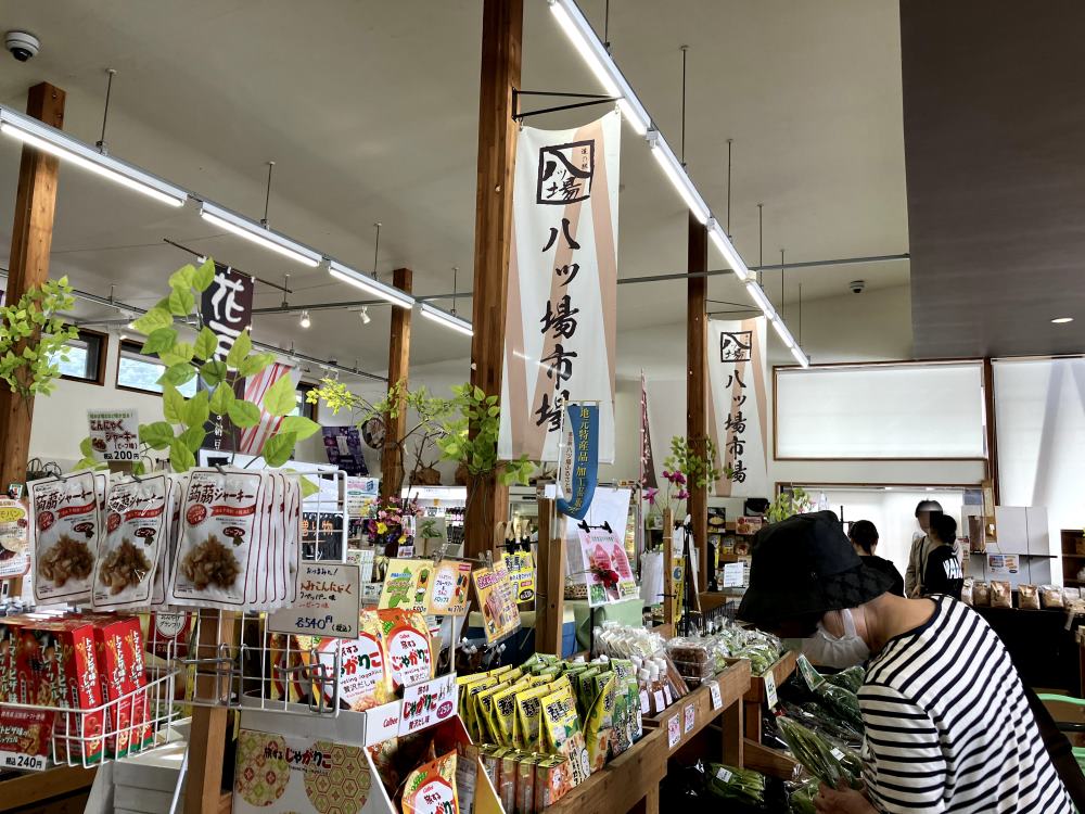 道の駅八ッ場ふるさと館では「八ッ場市場」といって、新鮮な野菜や果物、オリジナル製品や土産物まで様々な商品がずらりと並んでいます。
