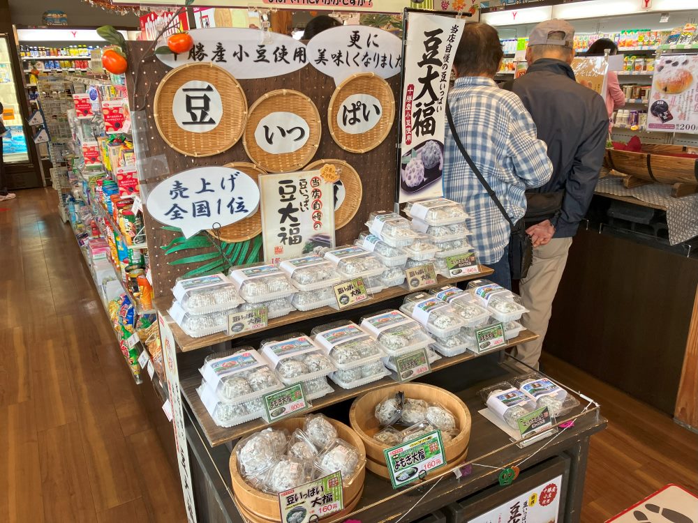 十勝産小豆をたっぷり使用した豆がごろごろ入った大福は、こちらも売り上げ全国第1位の人気商品!