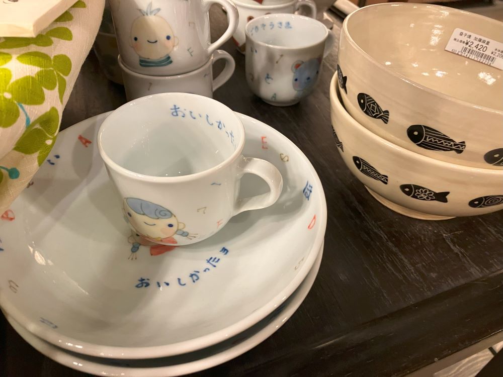 店内には子供用食器もありました。完食するとお皿の底から「おいしかったヨ」と書かれた文字が見えるかわいらしい食器も!