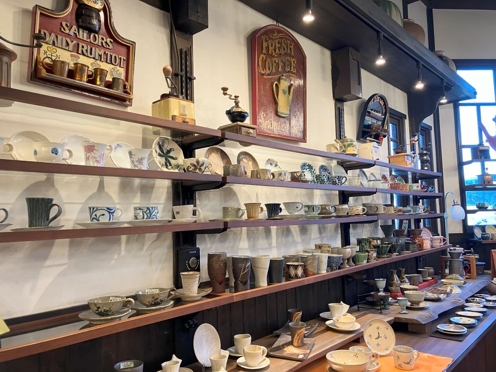 骨董屋から始まった名残が店内には多く残っており、店内では今も数多くの陶器が販売されています。