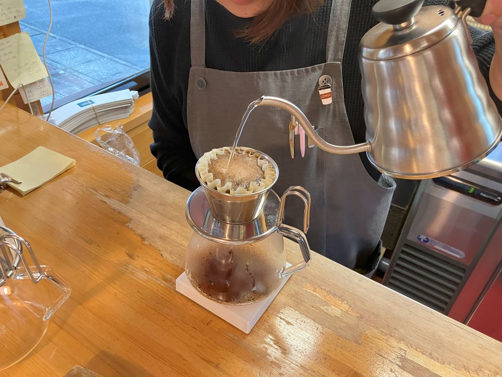 こちらでは、注文を受けてから丁寧にハンドドリップでコーヒーを淹れてもらうことができます。