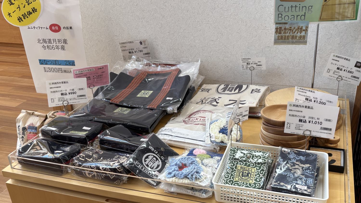 月形刑務所で制作された作業製品は、洒落の利いたトートバッグや木製品など、使い勝手や質の良さで大人気。人気ハンバーグチェーン店で採用している木製皿も、実は月形刑務所で作られたもの。