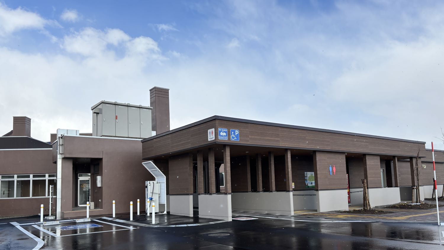 道の駅オープンに伴って新設された24時間利用できるトイレは、バリアフリー設計。解放感があり、とても明るく安心感があります。