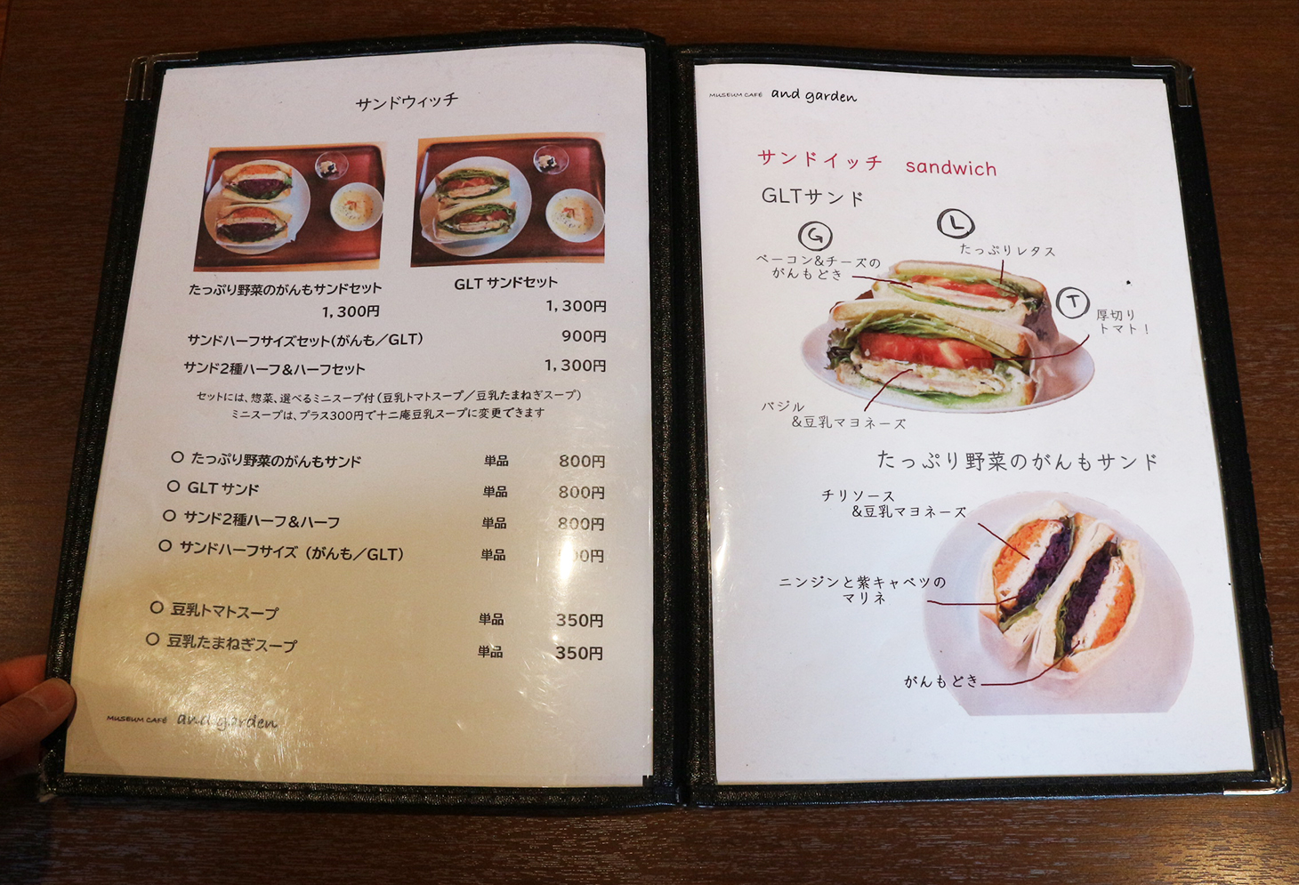 色鮮やかな「たっぷり野菜のがんもサンド」「秘伝豆のソフトクリーム」など魅力的なメニューがたくさん。