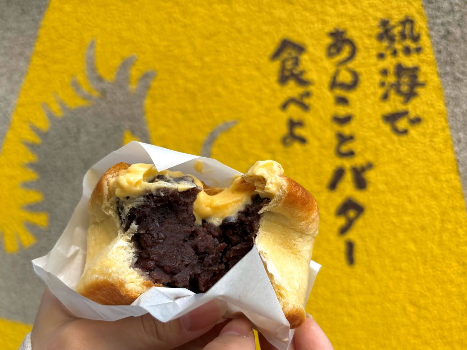 こちらでいただいたのは、累計販売個数90万個を突破した「熱海ばたーあんパン」。ふんわりとした薄皮のパン生地に、粒あんとバタークリームがたっぷり!