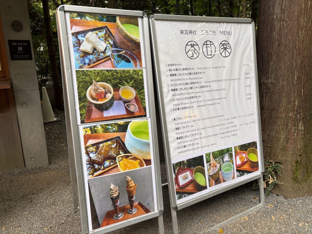 ここでまずいただいたのはソフトクリーム!神様の大好物といわれる麦こがしが添えられていて、縁起物のソフトクリームです。