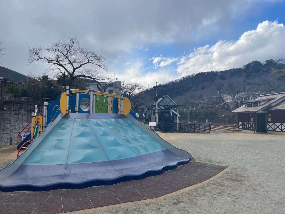 山北駅の近くでぜひ立ち寄りたいのが、線路沿いにある「山北鉄道公園」。改札とは反対側にあり、線路の上にかかる歩道橋を歩いて行くことができます。大きな遊具があり、子どもたちに大人気!広場ではゲートボールができるようになっていて、地元の方々で賑わっています。