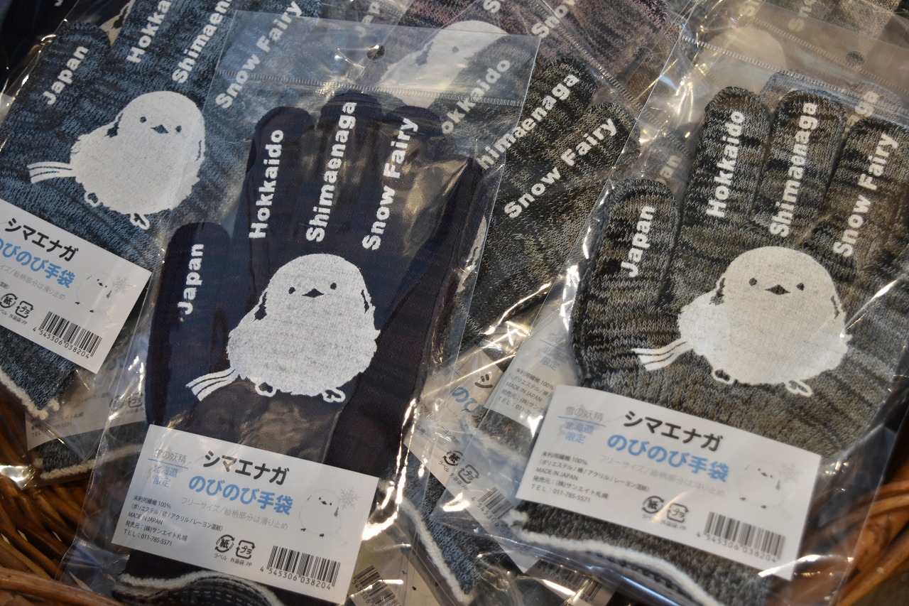 その他、キーホルダー、ステッカー、ポストカード、ステーショナリー、食器、リュック、手袋、ハンドクリームなど多数販売。生活すべてをシマエナガで埋め尽くすことができます。