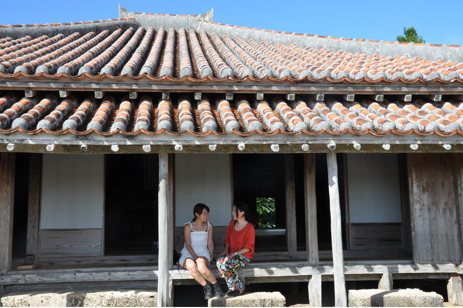 見学は一族の末裔に嫁いだおばあさんが受付案内をしており、歴史を丁寧に説明してくれます。おばあさんの説明を聞くと、上江洲家がどれだけすごい家なのか実感できます。縁側に腰掛けると海も見え、心なごむ風情がなんとも素晴らしい。上江洲家の周辺は緑で囲まれ、青い空を背景に、赤瓦屋根が美しく映えます。入場料を支払っても見る価値のある久米島名所です。
