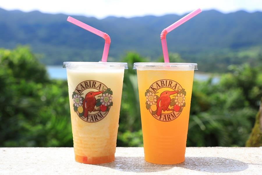 川平湾を望むテラス席では、ヒカゲヘゴがつくる木陰の下で気持ちよく過ごせます。注文を受けてからつくるドリンクはグラスに注がれて提供。店内席で味を確かめながら、火照った身体を癒しましょう。テイクアウトする方は、専用カップを片手にドライブに出かけてみては?可愛いロゴ入りのカップを手に持つだけで、ワクワク気分も盛り上がりますよ。お土産探し&休憩を楽しめるこの場所で、ぜひ思い出をひとつ作ってくださいね。