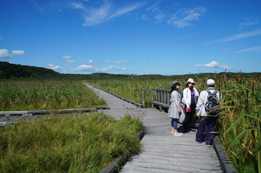 釧路湿原国立公園内でたんちょう釧路空港から一番近いところにある、温根内ビジターセンターを起点とする木道。車いすなどを押して歩いても大丈夫なほど整備された立派な木道だ。約1時間で1周できる温根内木道には、湿原の動植物などを紹介する解説板が随所に設置されている。季節ごとにミツガシワ、ヒメシャクナゲなど多くの花々を見ることができるほか、タンチョウの姿も見られる。
