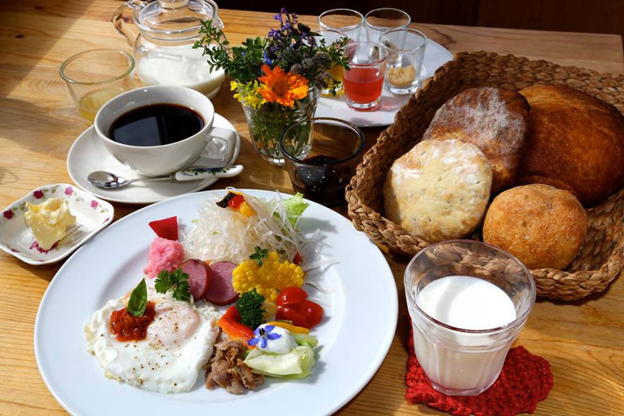 カレー、パスタ、ピザなどのランチに加え、前日までに予約した人に限るが、朝5時30分~10時までの朝食の提供も始めた。朝食メニューは焼き立てパン・半熟目玉焼き・手作りハム ・手作りジャム・鶴居はちみつ・搾りたて牛乳他で1500円。早朝にタンチョウヅルを観察し、その後に日の出を見ながらの特別な朝ごはんなどいかがだろう。