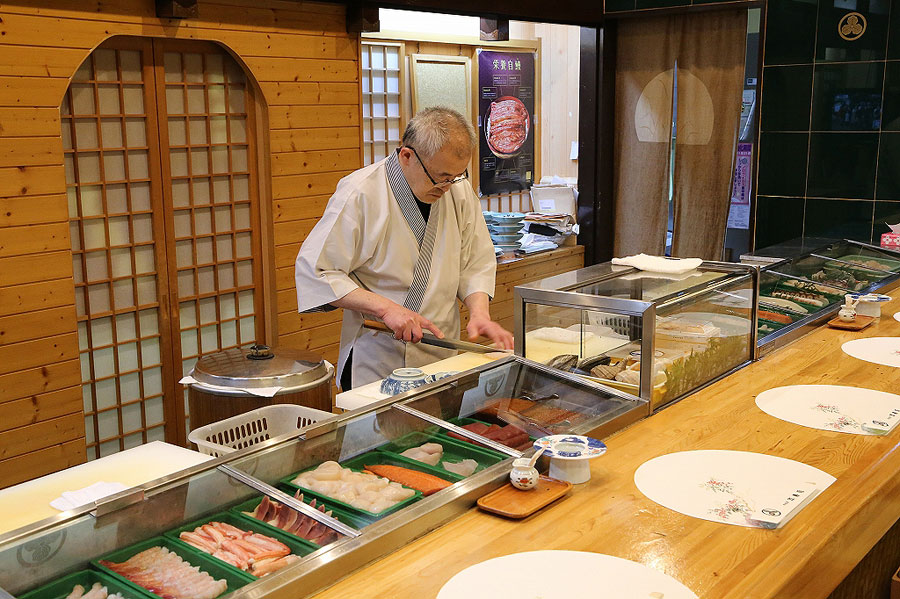 オホーツク海の幸を存分に味わうのなら、やはり王道は寿司。政寿司は紋別の老舗のお寿司屋さん。小森崇夫さんはこの店の3代目の店主。「観光で来られた方からは海鮮丼のオーダーも多いですよ」。中でもホタテ、カニ、ボタンエビ、ウニといった地物をふんだんに使用した「紋別港丼」(2800円)の人気が高いという。また、地元のものを使った寿司をおまかせで、という観光客も多いという。そのオーダーではマグロを使わず、紋別港丼で使う材料のほか、ホッキ、サーモン、イクラ、ツブや、その日にある自慢のネタを握る。タラバガニの内子といった他ではなかなか食べられない珍味も軍艦巻きで登場したりもする。そのおまかせで2800円~3000円くらいというのだから、かなりリーズナブル。