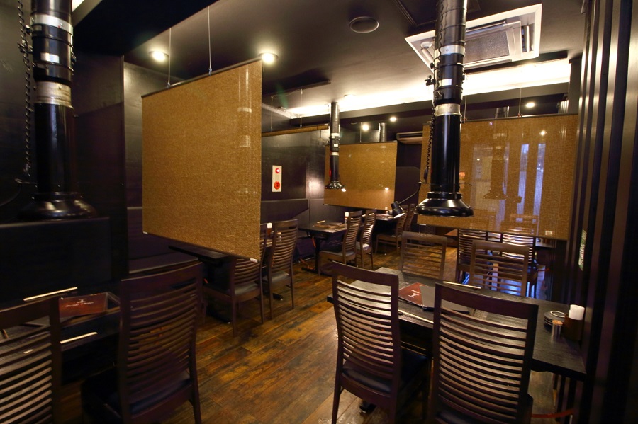 鉄板は各テーブルに設置されていて、自分好みに焼いて楽しめるようになっています。鉄板焼きなので肉に均等に火が入り、うま味を逃さず美味しく焼けるのも特長です。