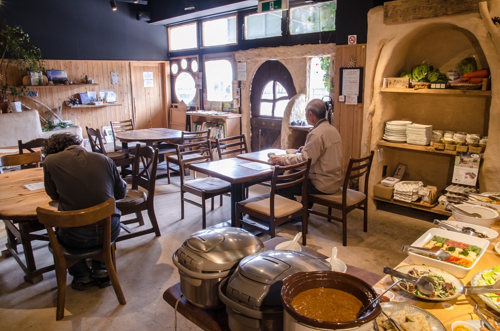 地元の生産者から直接仕入れた野菜に、カフェの運営母体である「ムラづくりNPO風の原っぱ」がアイガモ農法で育てた米を料理に使用しています。調味料も自然塩など極力無添加にこだわり、「体にやさしい料理」を提供しています。また、持ち込んだ食材を調理してくれることも。