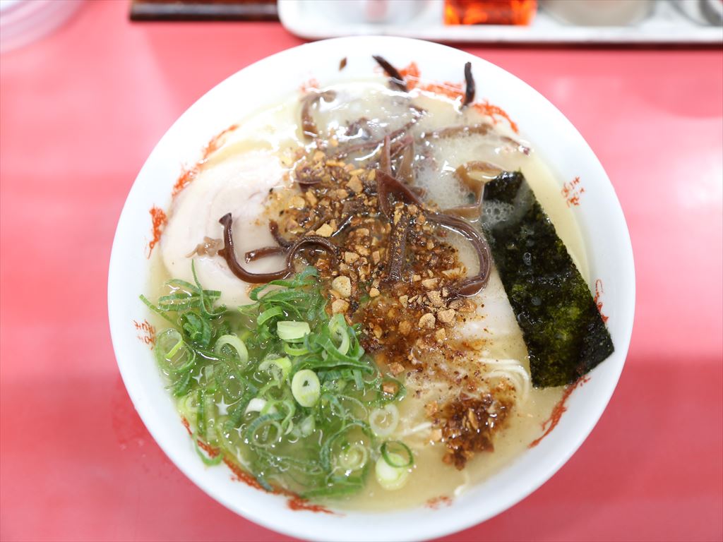 豚骨を煮込んだスープをベースに昆布ダレと沖縄産の塩を使用したスープと、細めのストレート面が特徴で、玉名ラーメン特徴の焦がしニンニクとの相性がいい。他の玉名ラーメンでは見かけない、紅ショウガや生ニンニクの醤油漬、自家製のラー油で味を変えて食べてもよいでしょう。