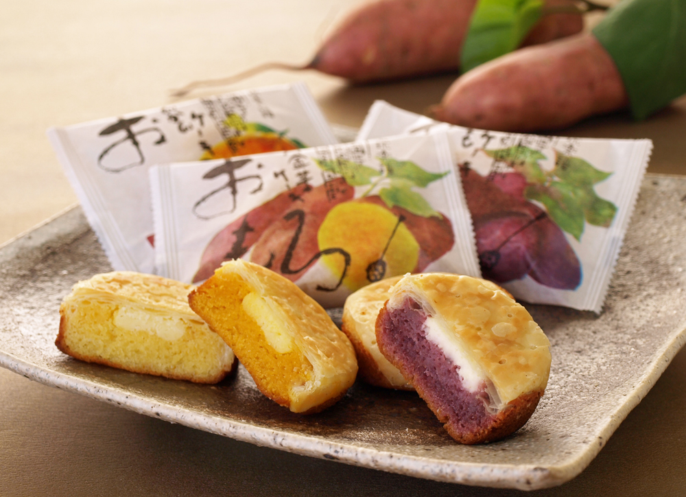 「おもろ 3種アソート」は、パイ生地の間に餡とクリームチーズが挟まっているお菓子。沖縄らしい「紅いも」、沖縄本島北部「やんばる」産の柑橘類「たんかん」、本島中部の伊計島でとれる芋「黄金芋」を使った、3種類のケーキが入っています。