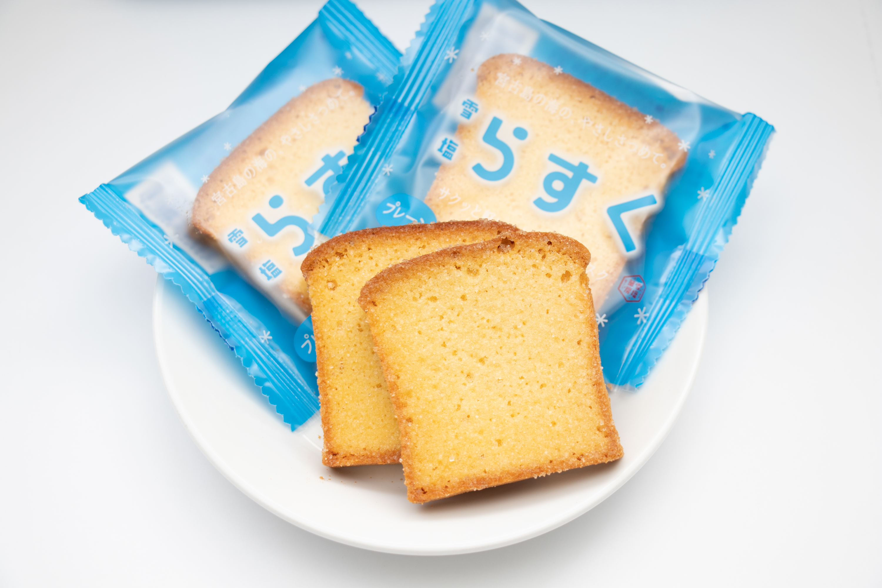 ほんのり塩味とやわらかい食感が特徴の「雪塩らすく」は、どこか懐かしい、シンプルな味わいのカステララスクです。