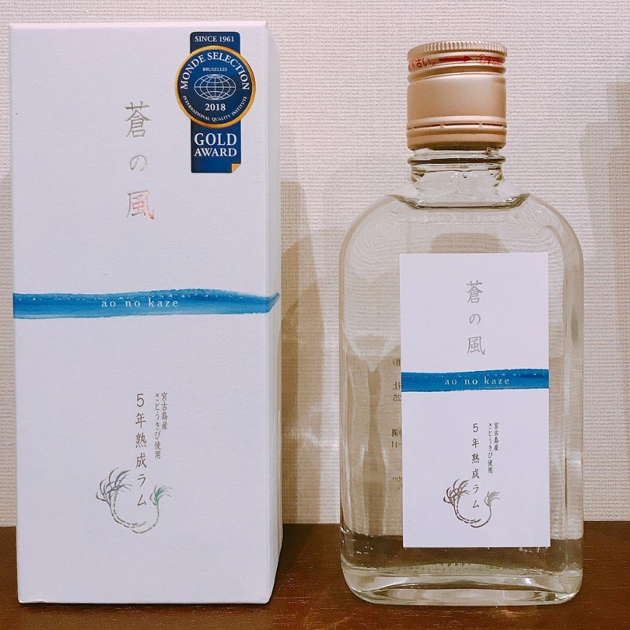 宮古島のサトウキビで作られるラム酒「蒼の風(あおのかぜ)」。宮古島で肥料や農薬を一切使用せずに栽培したサトウキビを一本ずつ手刈りし、手作業で作られた5年熟成のホワイトラムです。