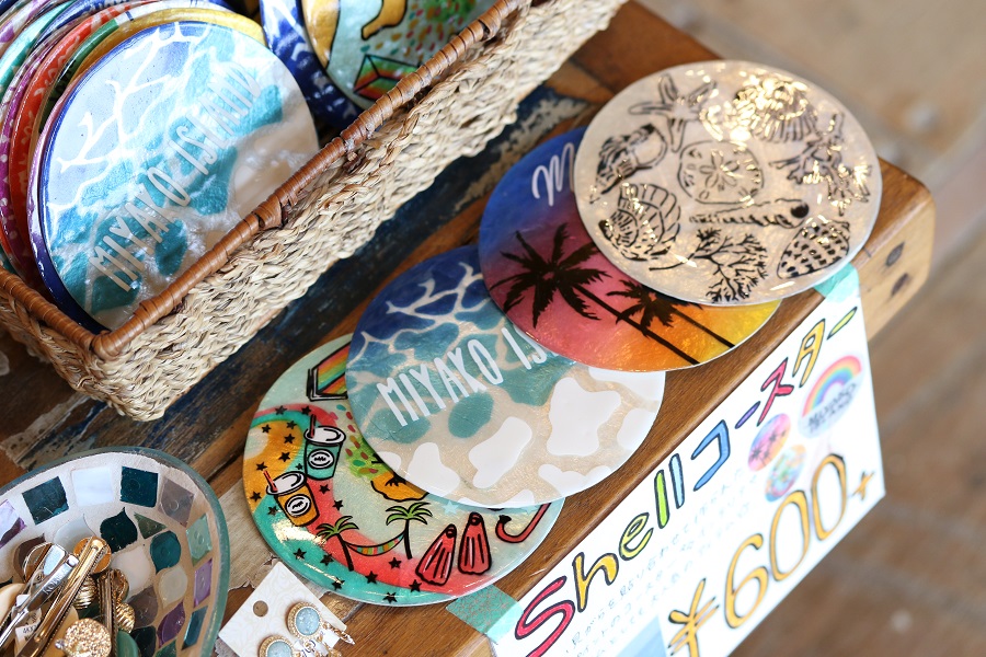 オリジナルデザインもそろえる「Shellコースター」は、値段もお手頃。気分もアガるカラフルなコースターは、バラまき土産にも最適です。