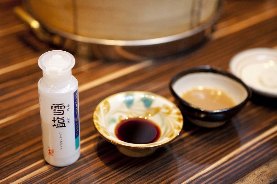 調味料は宮古島のパウダーソルト「雪塩」、県産シークァーサーを使った自家製ポン酢、久米島産の白味噌にごまや黒糖を合わせた自家製味噌ダレの3種類。島黒そのものの、うま味をまず味わいたいなら、最初はシンプルに雪塩で食べるのがおすすめです。
