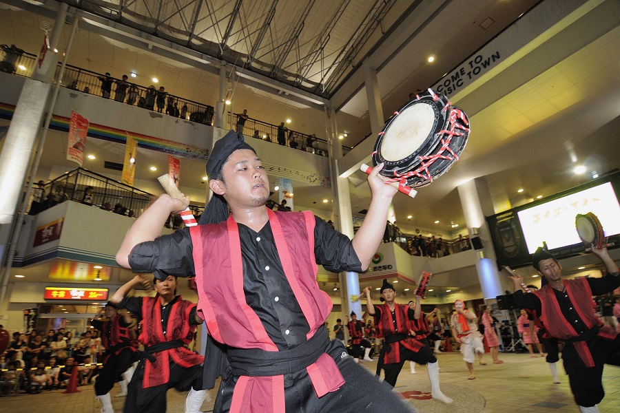 今年も沖縄市にある「コザ・ミュージックタウン」の広場を中心に沖縄市内の各所で、1000人規模のエイサーイベントを開催。各青年会は順番にエイサー演舞を行い、まつり本番に向けてコザの街を大いに盛り立てます。