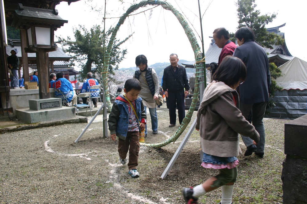 平成29年(2017年)3月25日土曜日、熊本県玉名郡南関町にある坂下阿蘇神社では、夏を越して五穀豊穣を祈る祭り「夏越祭」が行われる。毎年3月の第4土曜日に開催されており、神事の後は舞踊の用能なども行われる。