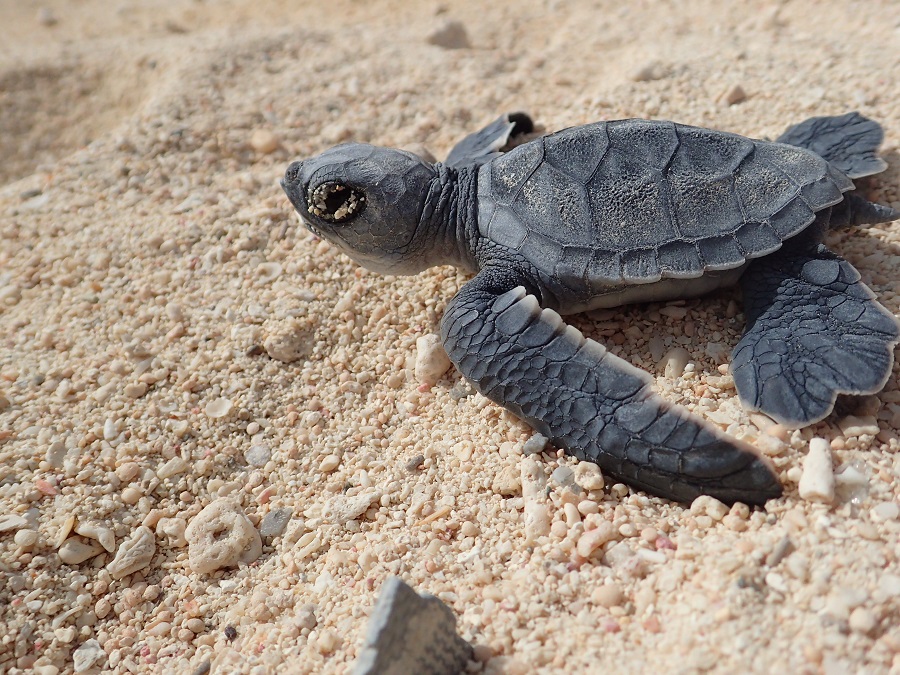平成29年(2017)8月から9月にかけて、沖縄県本部町(もとぶちょう)に位置する海洋博公園でクロウミガメの赤ちゃんが誕生しました。飼育下での繁殖に成功したのは、世界初となります。