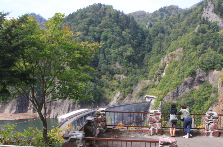 「豊平峡ダム」は定山渓温泉街よりさらに山奥へ入った、豊平川の上流部にあるアーチ式のダム。夏の緑に囲まれた湖は美しく、夏は放水量も多いため迫力満点。「これぞ北海道!」というビッグスケールの景色が楽しめる、おすすめのスポットなんです。