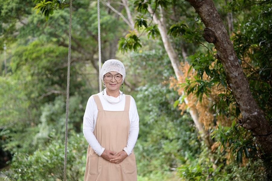 「季節によってはたくさんの蝶々が飛びかいとても綺麗です。時間を忘れてゆっくりと過ごしてくださいね」と話すオーナーの真謝江美子さん。大宜味村の恵みを体全体で感じられる「がじまんろー」へぜひ足を運んでください。