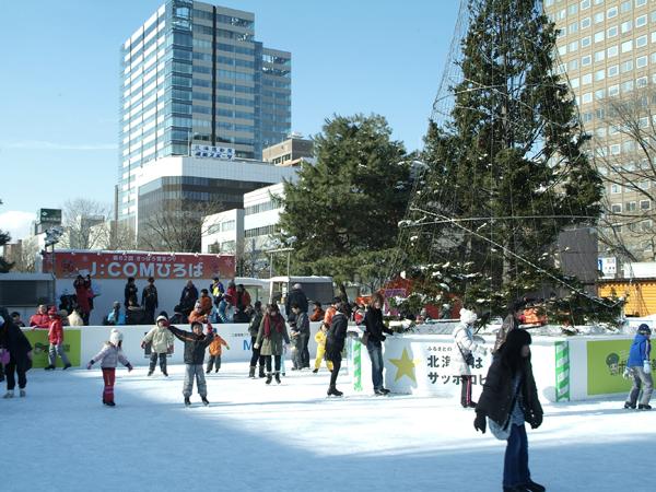 さっぽろ雪まつりのメイン会場である大通会場1丁目「J:COMひろば」に設置される、屋外型のスケートリンク。東西21メートル、南北25メートルの広さがあり、ファミリーで楽しめる体験型のアトラクションだ。