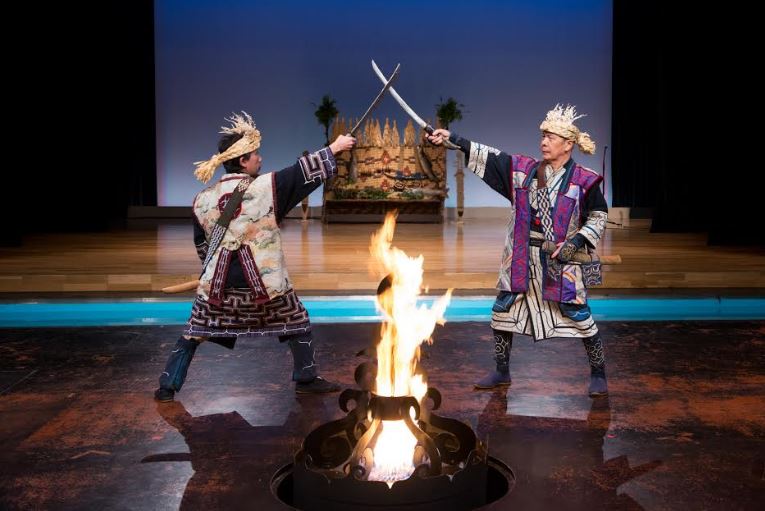 アイヌ民族は、自然やすべての動植物に神が宿ると考えており、神聖な雰囲気の中で祈りを捧げ、燃えさかる炎とともに歌い踊ります。点火から鶴の舞、弓の舞、トンコリなどの演奏、黒髪の踊りなどが行われ、音楽と光が織りなすアイヌ民族の世界観などが物語風に表現されます。