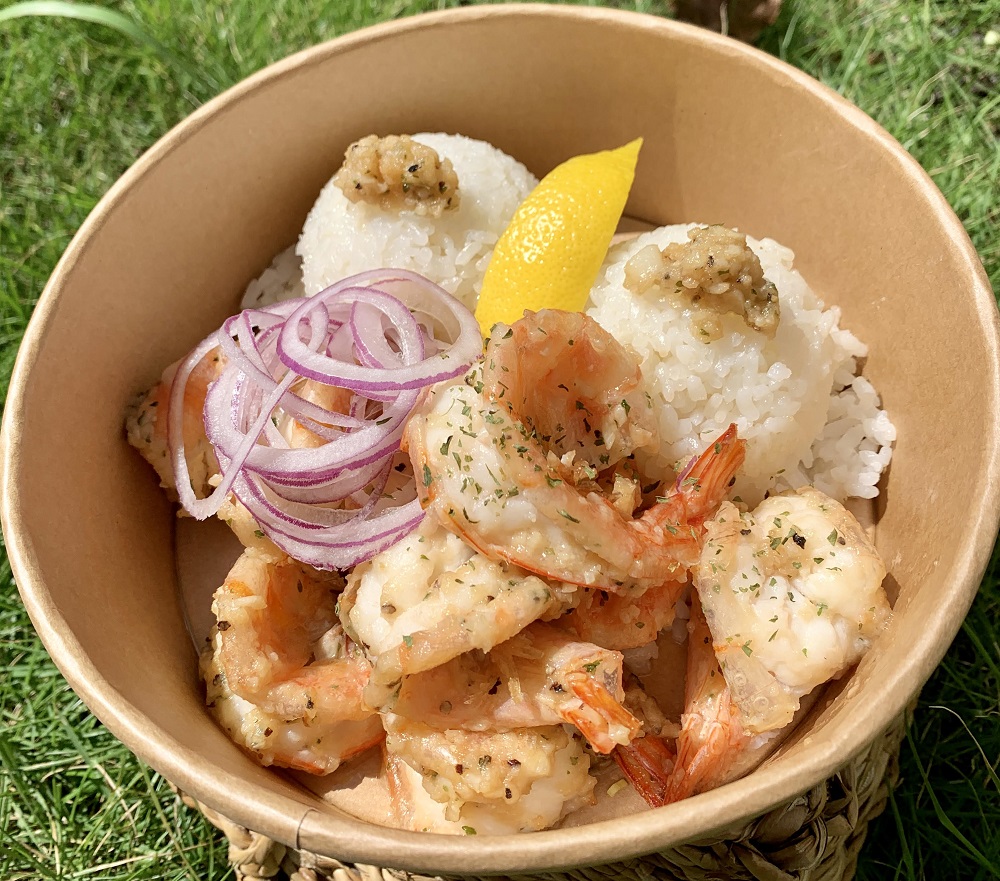店舗スタッフのイチオシは、ガーリックとバターで仕上げたシュリンプにレモンをかけて食べる、後味がさっぱりとした「バターガーリックシュリンププレート」、ガーリックソースにカイエンペッパーなどでスパイスをきかせた「スパイシーガーリックシュリンププレート」。ガーリックシュリンプはテイクアウトも出来るので、目の前の古宇利ビーチで食べるのもおすすめですよ。