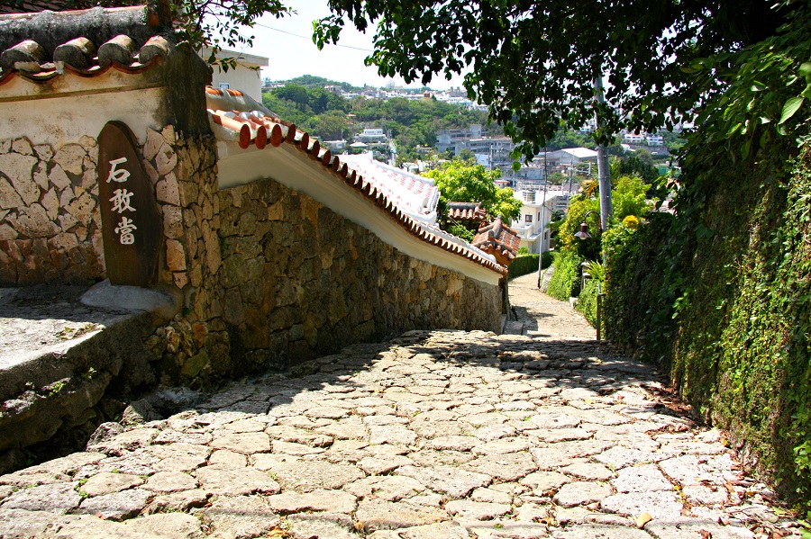 首里から那覇港や沖縄本島南部へ通じる主要道路として、16世紀に造られた「真珠道(まだまみち)」の一部。当時は総延長約10キロにも及んだが、今は金城町に300メートル残るのみとなった。周辺にはツタの生えた石垣や赤瓦屋根の家など、琉球王国時代の面影が残っていて、古都らしい雰囲気を楽しむことができる。道の途中には休憩できる東屋や、テレビドラマ「ちゅらさん」の撮影地になった民家があったりと、見どころも多い。