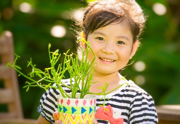 油性マジックとアクリル絵の具を使って植木鉢にペイントしてみましょう。その植木鉢に好みの植物を植えれば、オリジナルの鉢植えが完成です。元々、幼児向けのプログラムで、授業の一環として米軍基地内の小学生などにも良く利用されるプログラムです。