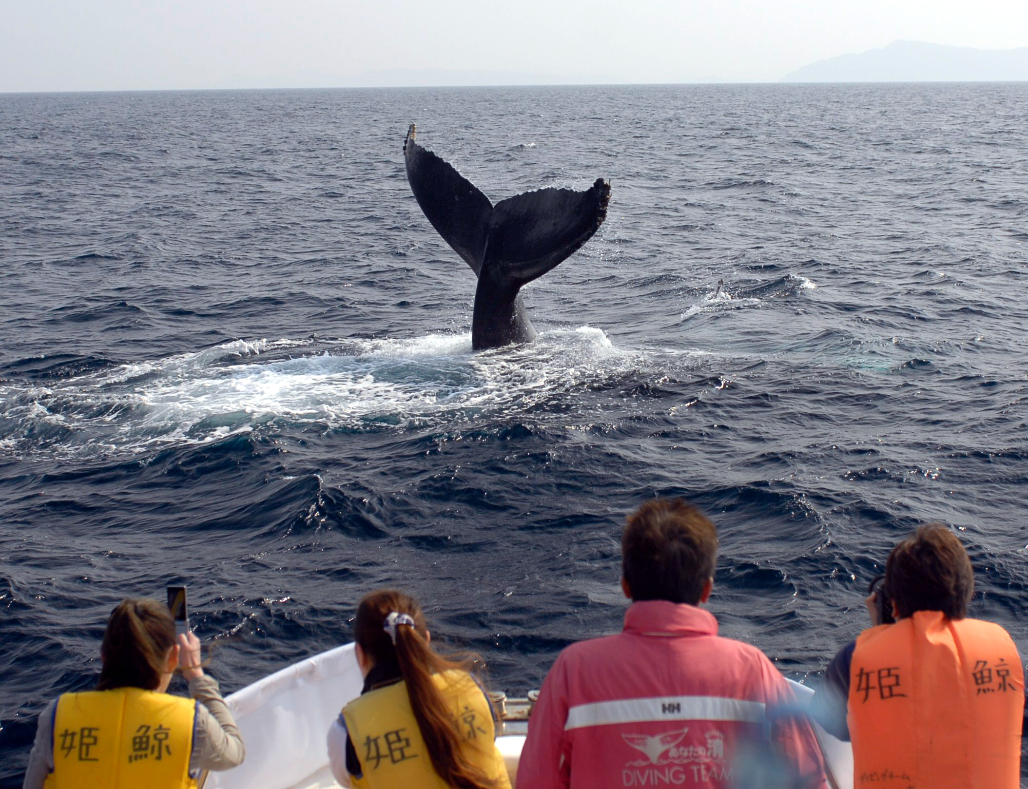 ウォッチングにかかる時間や待機中のことなどはショップによって異なるので、何か気になることがあれば先に確認しておこう。クジラが現れたらガイドがいろいろと説明してくれるが、すぐ潜ってしまうこともあるので、見逃さないよう注意して観察しよう。