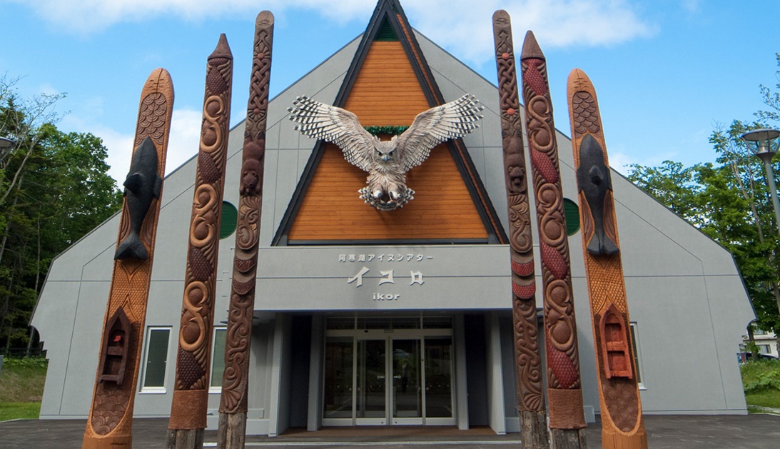 北海道・道東の阿寒湖アイヌコタンにあるアイヌシアター「イコㇿ」は、そんなアイヌ民族の伝統文化に触れることができる施設です。「イコㇿ」はアイヌ語で宝物という意味。小さい「ㇿ」はアイヌ語音を表現したもの。この施設では、「アイヌ古式舞踊」「イオマンテの火まつり」などさまざまな演目の上演を行っています。