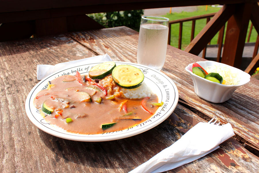 「ふれあいファームレストラン」では、農場で収穫された採れたてで新鮮な野菜料理を味わうこともできる。ナスとトマトのパスタや、パプリカのパスタ、ざるそばなどのメニューがある。中でも人気なのが「夏野菜のカレー」。ズッキーニやパプリカなどの夏野菜がふんだんに入ったカレーは夏限定の人気メニューだ。北斗市の自然を感じながら、旬の野菜を満喫しよう。