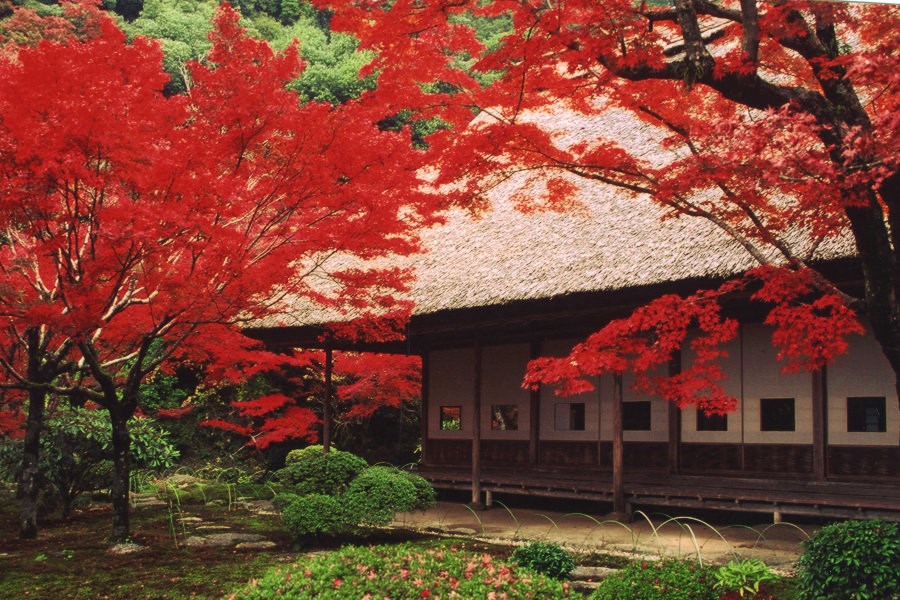 毎年、新緑の時期と紅葉の時期にだけ一般公開されています。春はやわらかな新緑のモミジ葉やツツジの花が咲く清々しい景色を、紅葉の時期は苔の青々とした深緑と紅葉の深紅の色彩の対比を楽しむことができます。
