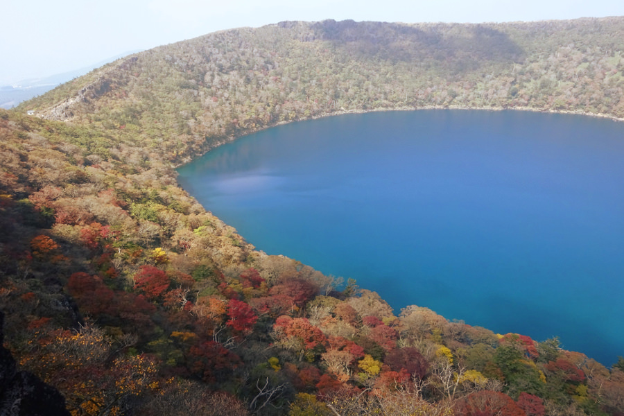 神秘的な火口湖で紅葉を楽しむ