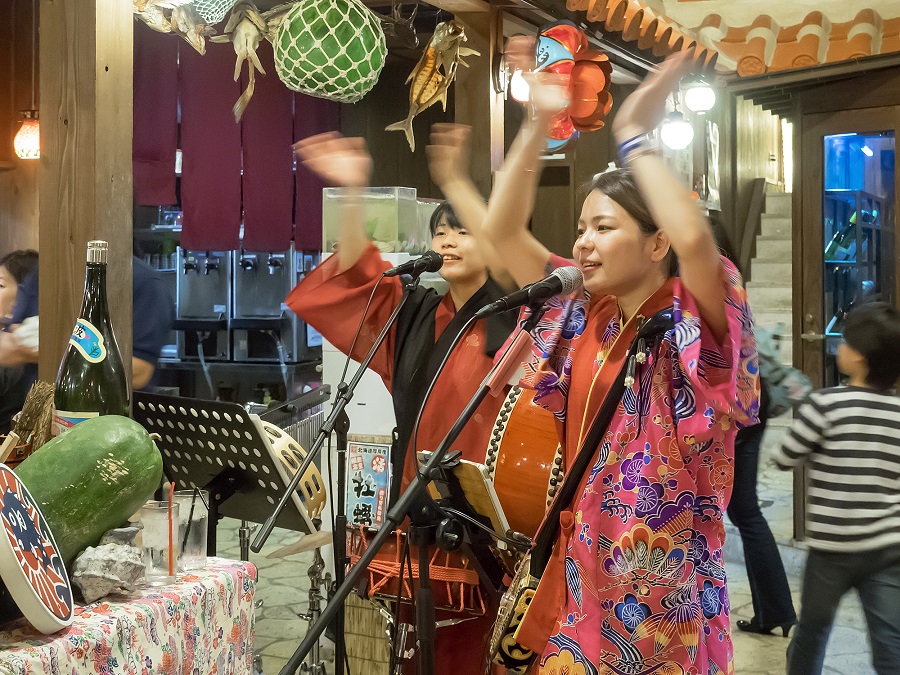 毎日ライブチャージなしで楽しめる三線演奏は、沖縄民謡から島唄、ポップスまで幅広いジャンルの好みに合ったレパートリー。最後はカチャーシー(沖縄の手踊り)で締めくくられ、演奏者と客席が一緒に盛り上がる内容となっています。なお、三線演奏は不定期のため事前に問い合わせがおすすめです。